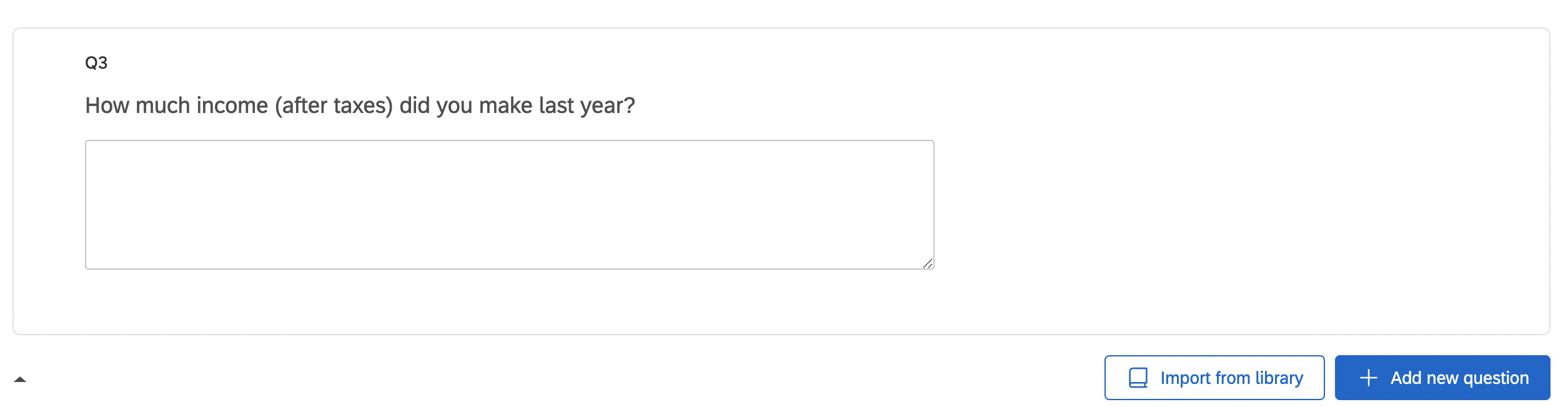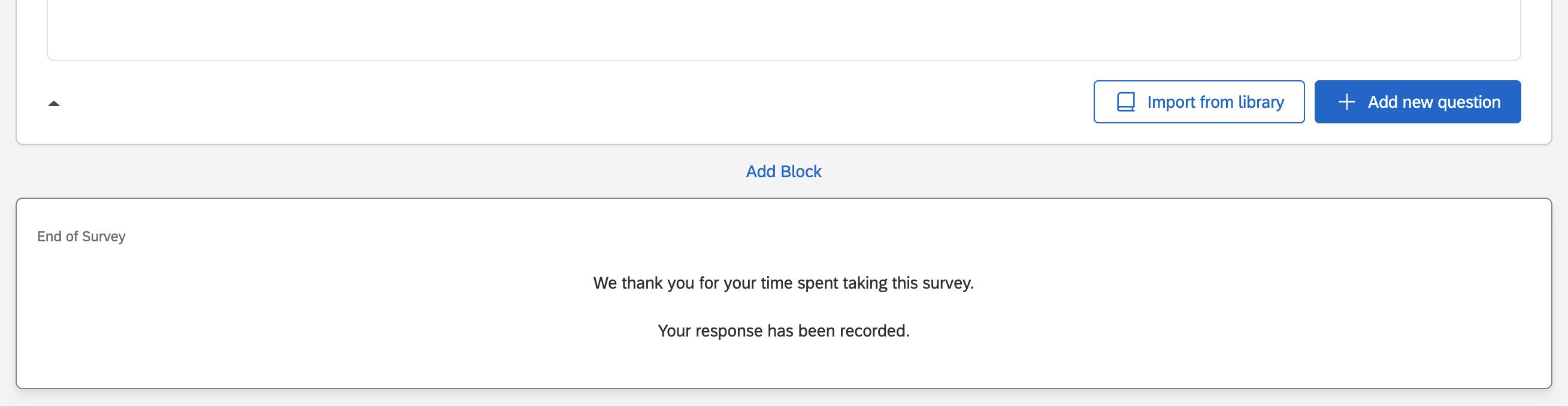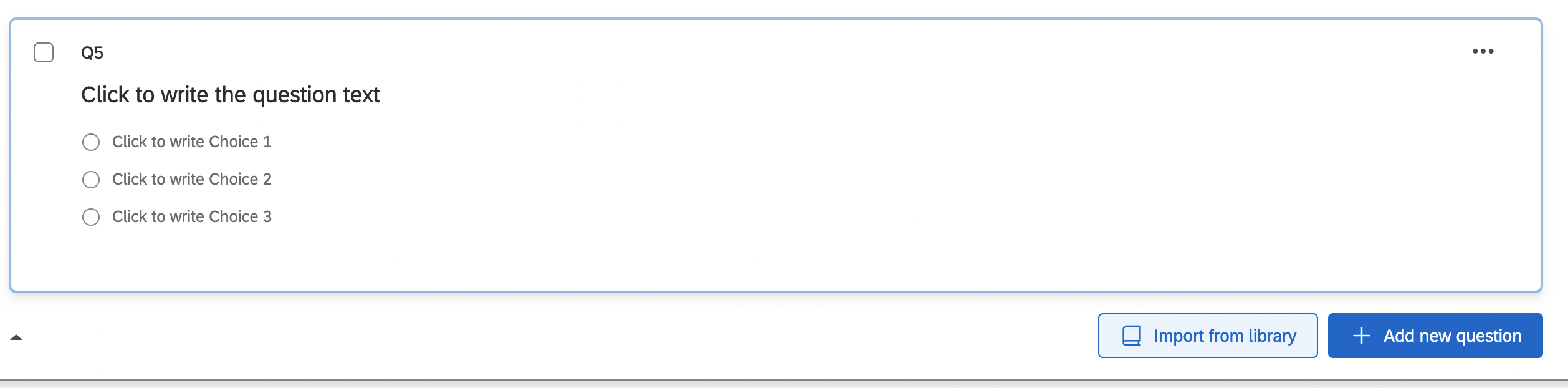 We don’t have to come up with all of the questions ourselves - Qualtrics has a question bank that you can use to find pre-written questions. Just click on the “Import from library” button at the bottom of the page.