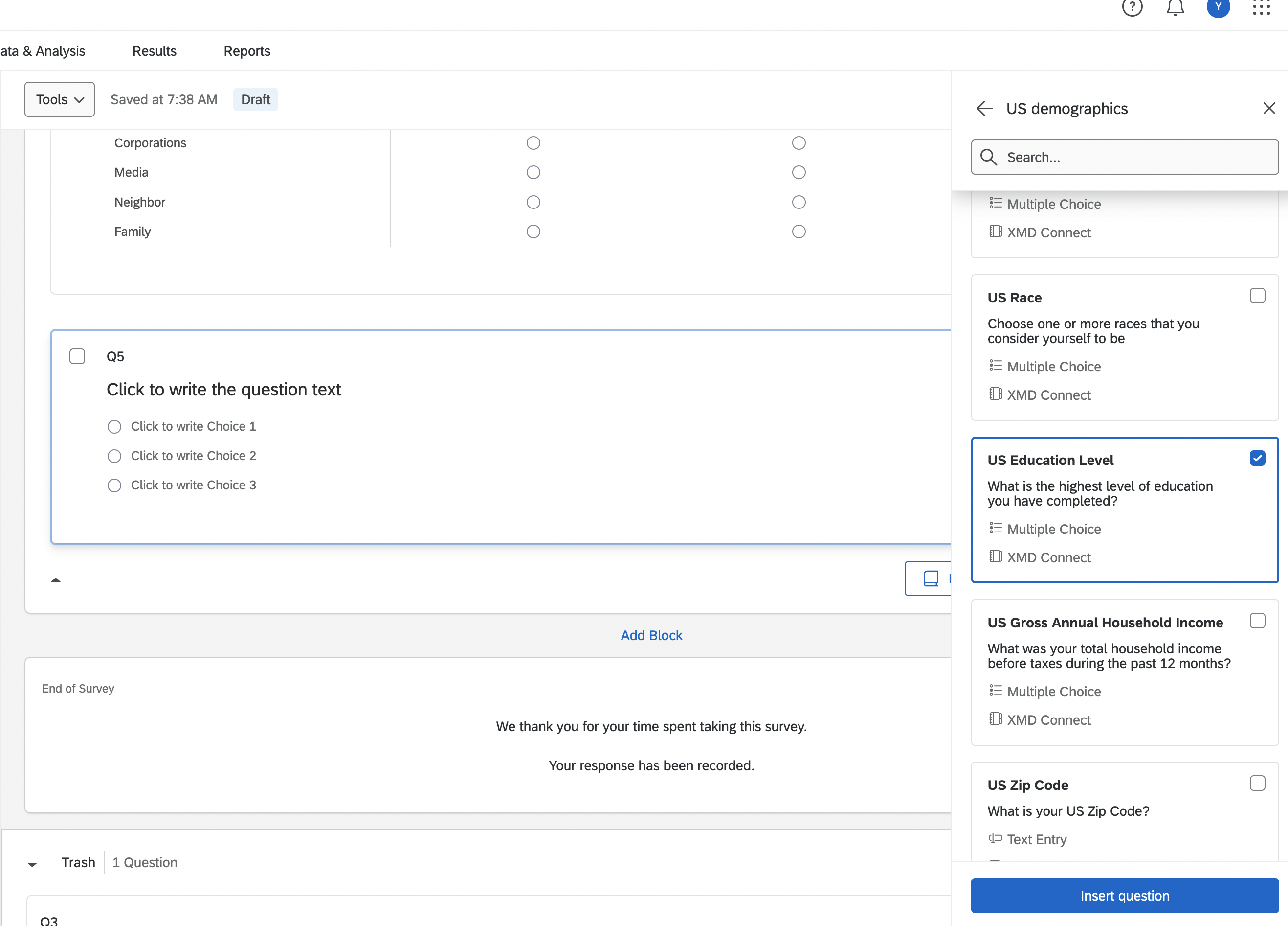 For example, we can copy a question from the GSS about trust in institutions to see the extent to which our respondents trust different groups, like their family or the government.