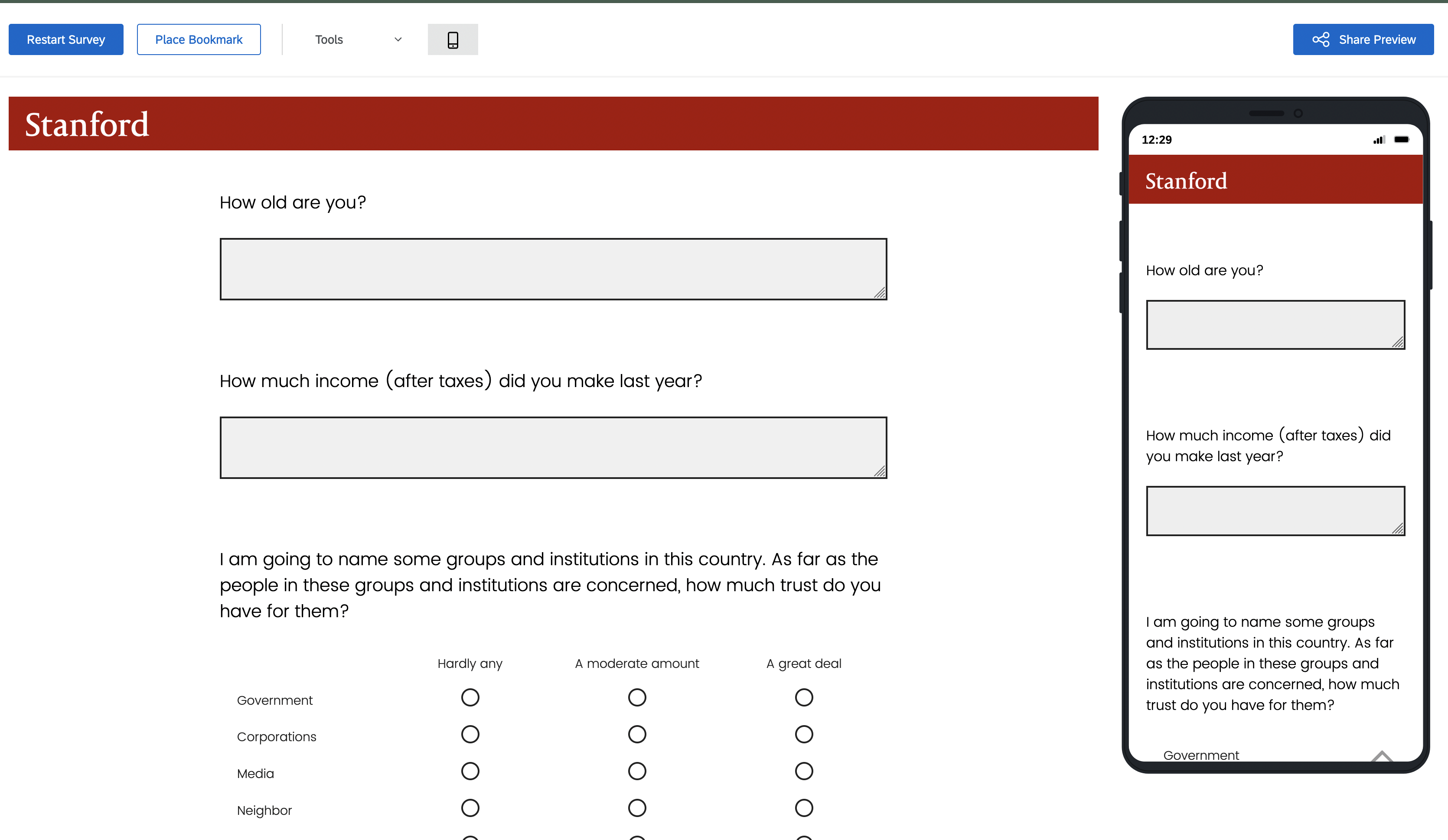 Stanford is kind enough to provide all of us with access to Qualtrics. Click here to get started.