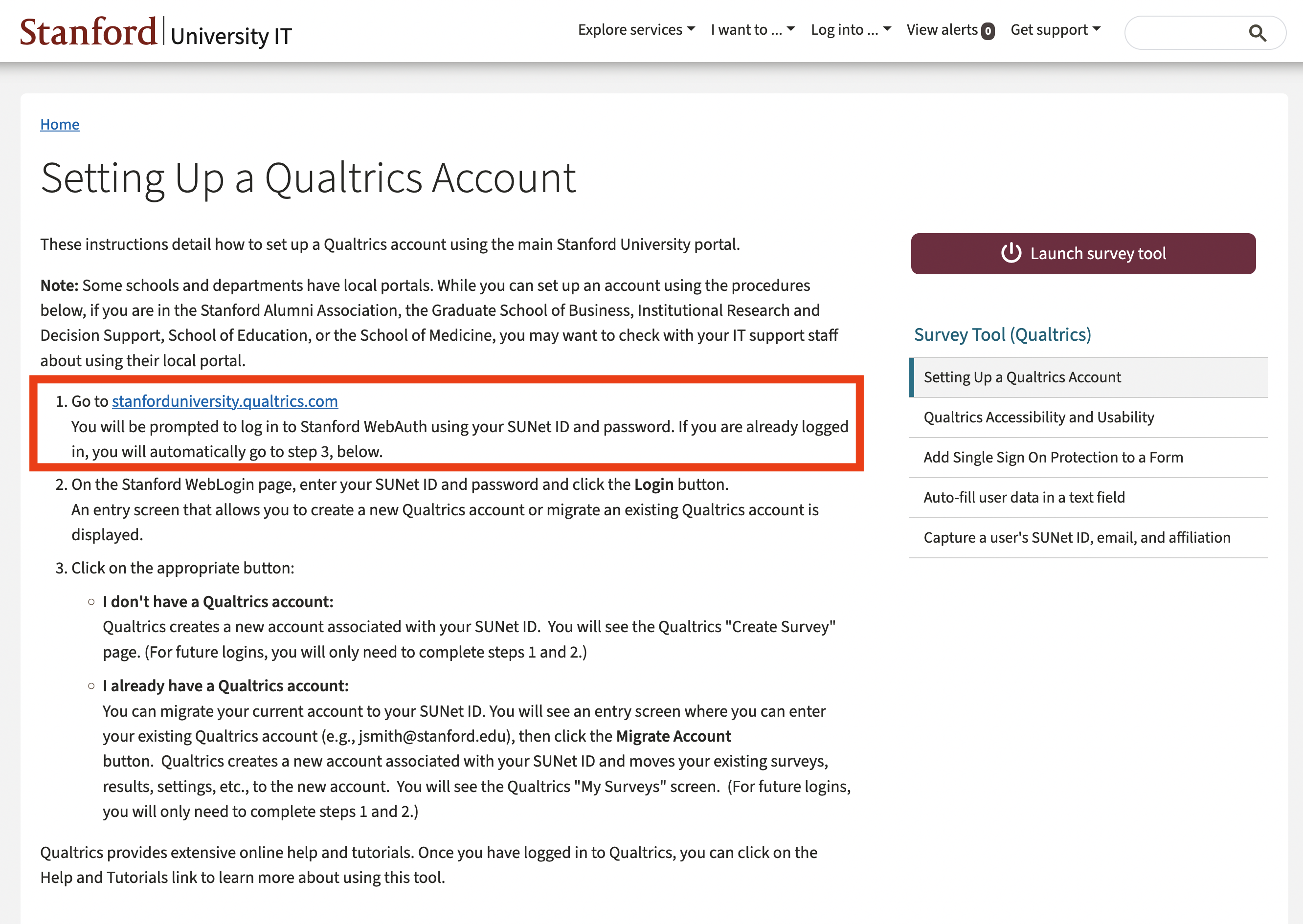 Click on the “Set up a Qualtrics account” button and it will tell you to go to https://stanforduniversity.qualtrics.com. Go to that link!